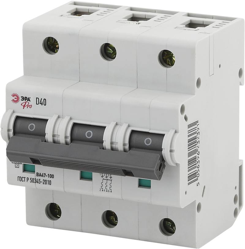 Характеристики Автоматический выключатель ЭРА PRO NO-902-287 ВА47-100 3P 40А кривая D 10кА:
