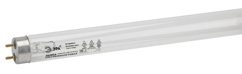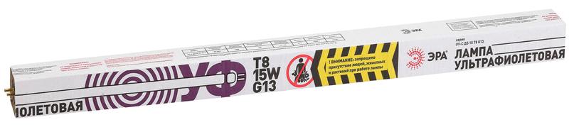 Люминесцентная ультрафиолетовая лампа для обеззараживания помещений (ЛЛ УФ), рабочая длинна волны 253.7nm 15 Вт., цоколь G13,тип колбы Т8, 12000 часов. Бактерицидные ультрафиолетовые лампы для пищевой промышленности в ассортименте ЭРА — это удлинённые лампы формата Т8. Лампы УФ-бактерицидные ЭРА представлены в двух вариантах мощности — 15 и 30 Вт.
