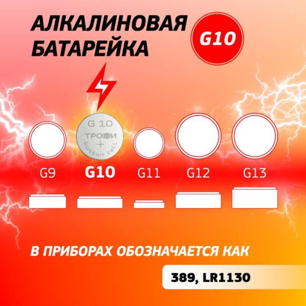 Характеристики Батарейки Трофи G10 LR1130, LR54 ENERGY POWER Button Cell: