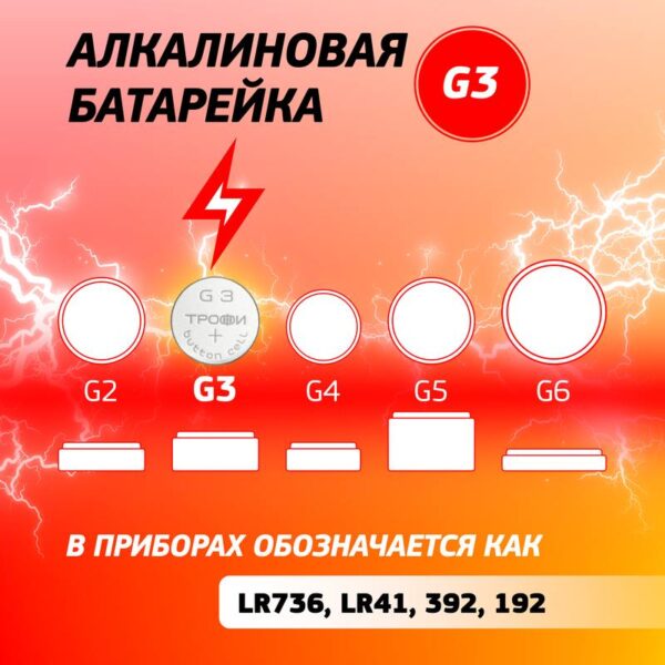 Характеристики Батарейки Трофи G3 LR736, LR41 ENERGY POWER Button Cell: