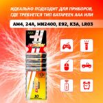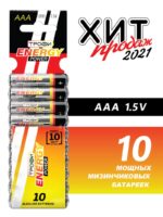 Универсальная серия щелочных батареек для питания большинства современных устройств повседневного использования: игрушки, комп.периферия, фонари и др. Упаковка в виде спайки из 10 штук с возможностью размещения на крючках торгового оборудования.