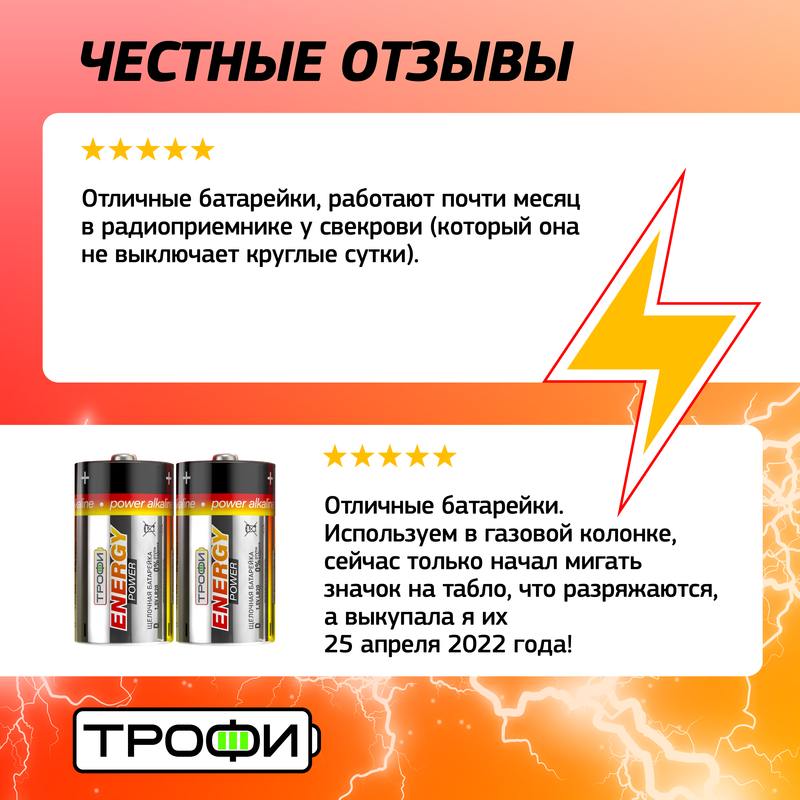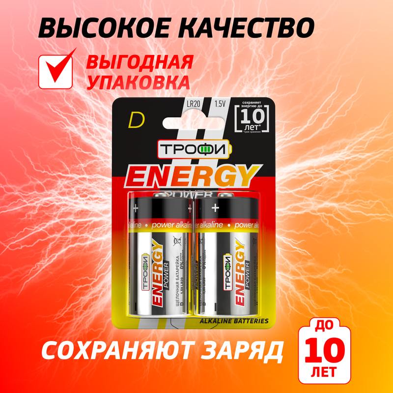 Характеристики Батарейки Трофи LR20-2BL ENERGY POWER Alkaline: