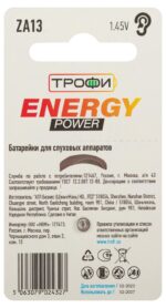 Характеристики Батарейки Трофи ZA13-6BL ENERGY POWER Hearing Aid: