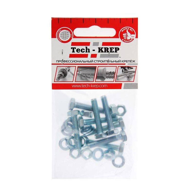 Характеристики Болт DIN933 с шестигранной головкой М6х25+гайка+шайба оцинк. (уп.8шт) Tech-KREP 112718: