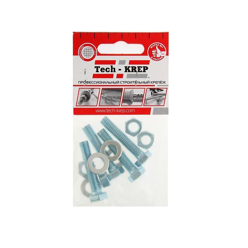 Характеристики Болт DIN933 с шестигранной головкой М8х40+гайка+шайба оцинк. (уп.4шт) Tech-KREP 112723: