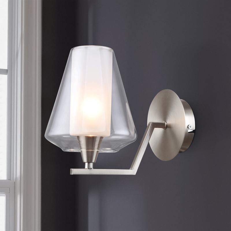 Rivoli Angela — минималистичные настенные бра в цвете никель сатин от итальянского бренда Rivoli. Бра настенные Angela отличает эффектный двойной плафон из стекла. Геометричная арматура данного бра хорошо подходит для современных интерьеров. Стеклянный двухчастный плафон выглядит оригинально и качественно рассеивает свет. Заказать Rivoli Angela можно в спальню, в гостиную, на кухню, в кабинет. С помощью этого универсального бра на стену легко организовать дополнительную подсветку перед сном, для чтения или создания уютной атмосферы. Покрытие арматуры бра Angela Rivoli – стойкое гальваническое. На таком светильнике даже спустя годы использования не появятся царапины и сколы.