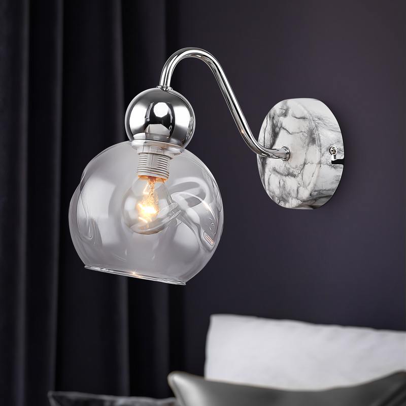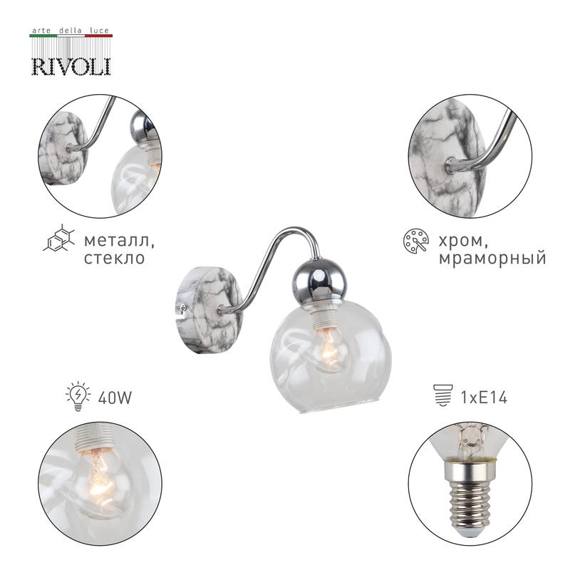 Бра настенные в стиле модерн Rivoli Dena выполнены в стиле модерн, окрашены в цвета хром и мраморный. Округлый фигурный плафон бра Dena изготовлен из прозрачного стекла. Прозрачные светильники настенные прекрасно пропускают свет. Такие настенные бра удачно купить в спальню, в гостиную, в квартиру-студию, в загородный дом. Настенные светильники-бра помогают эффективно зонировать пространство. Если в вашем доме есть бра настенные светильники Rivoli Dena, у вас всегда будет качественное дополнительное освещение для чтения, отдыха, рукоделия, общения.