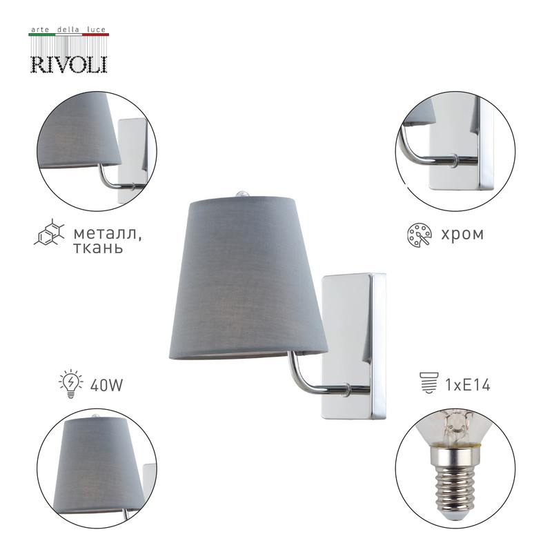 Характеристики Бра светильник Rivoli Evie 2087-401 настенный 1 х Е14 40 Вт классика: