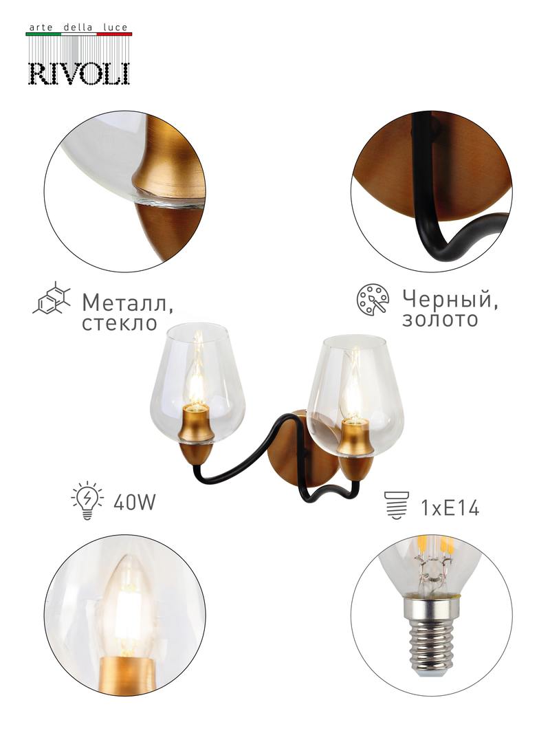 Характеристики Бра светильник Rivoli Fresco 5045-402 настенный 2 * E14 40 Вт лофт — кантри:
