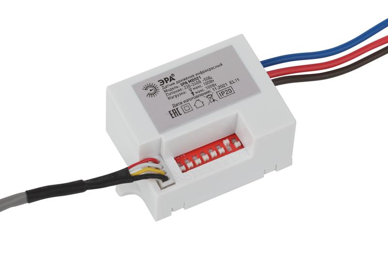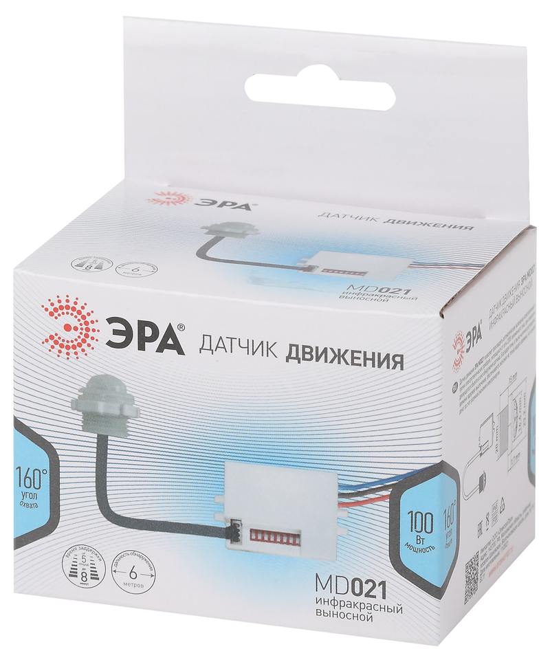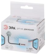Характеристики Датчик движения ЭРА MD 021 для дома инфракрасный 100 ВА 5сек/8мин 6м IP20:
