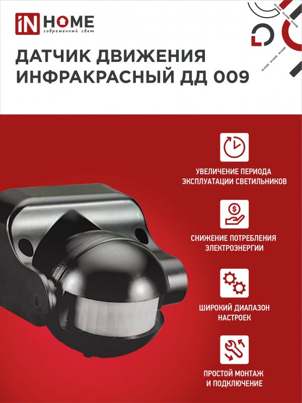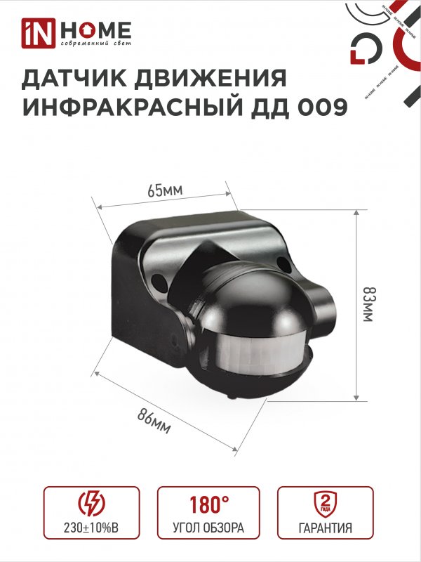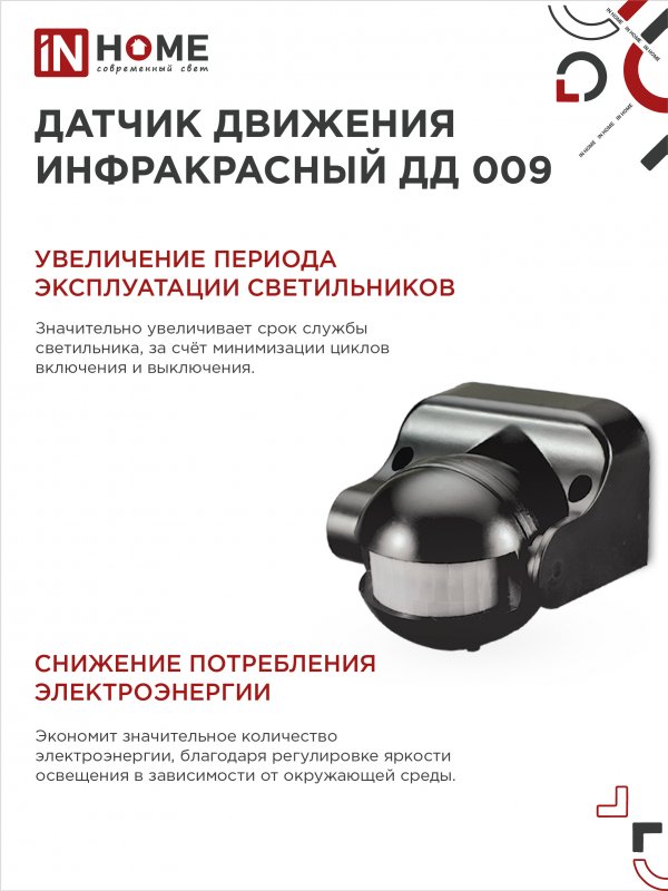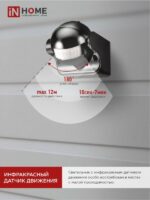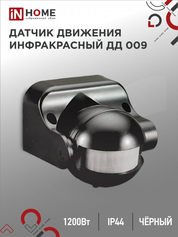 Характеристики Датчик движения инфракрасный ДД 009 1200Вт 180 гр.12м IP44 черный IN HOME: