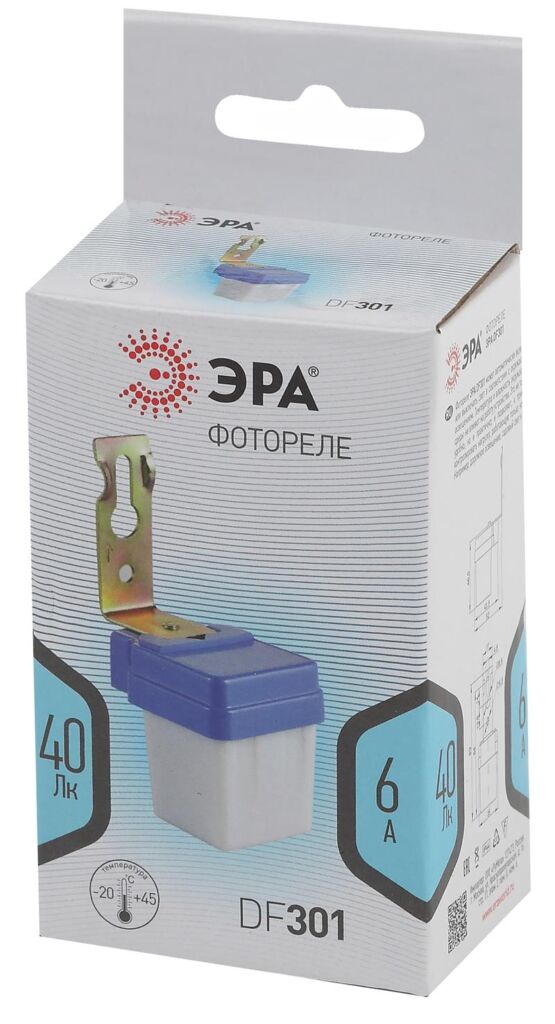 Характеристики Датчик освещенности ЭРА DF 301 Фотореле серый, настенный, максимальная нагрузка 1300 ВА IP44: