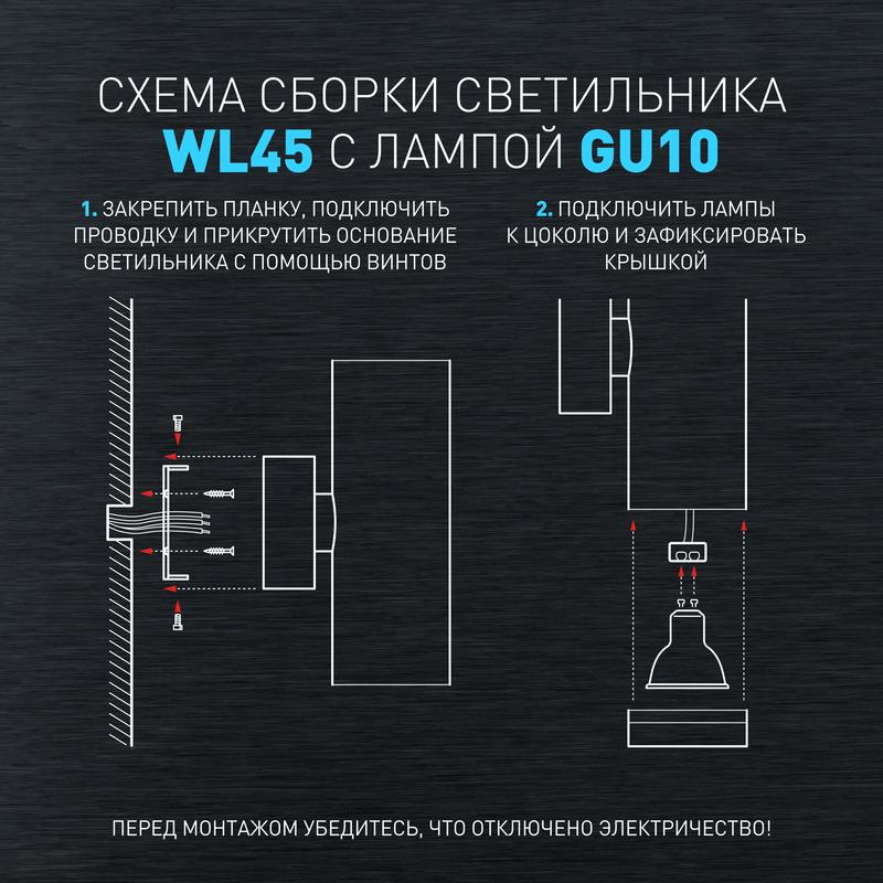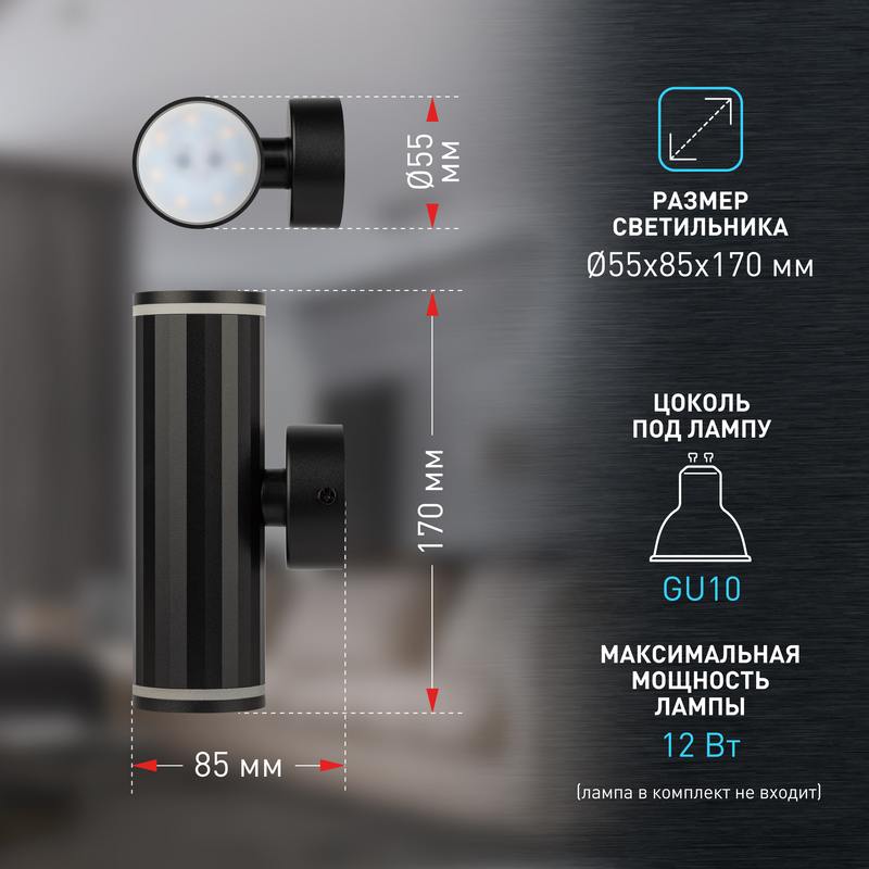 Светильник декоративный настенный WL45 BK предназначен для освещения гостиных, коридоров, спальных комнат. Создает интересные световые композиции, подчеркивает структуру материалов, формирует неожиданные эстетические эффекты. Цоколь для источника света GU10, напряжение питания ~230В 50/60Гц, материал металл, пластик, цвет светильника черный, размер D55х85×170мм, максимальная мощность лампы 12 Вт, степень защиты IP20