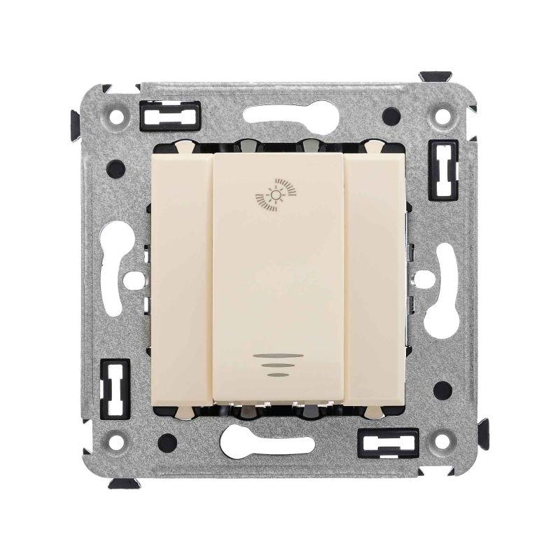 Диммеры предназначены для управления контуром освещения и регулировки интенсивности освещения помещения. Регулирование регулирование 3–120 Вт для LED ламп, регулирование 3–220 Вт для ламп накаливания и галогенных ламп. Диммирование по переднему и заднему фронту. Выбор режима включения освещения (плавный пуск). Применяются для скрытой установки в стену, механизмы поставляются в комплекте с суппортом. Пластиковые детали электроустановочного изделия имеют оттенок «Ванильная дымка».