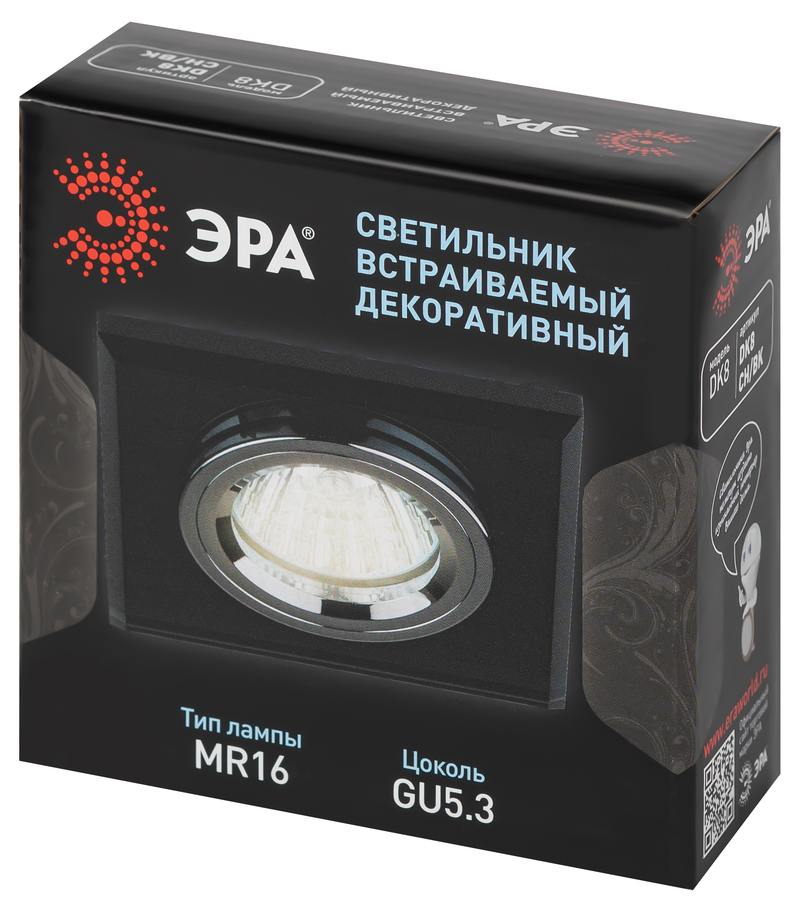Характеристики DK8 CH/BK Светильник ЭРА декор стекло квадрат MR16,12V/220V, 50W, хром/черный: