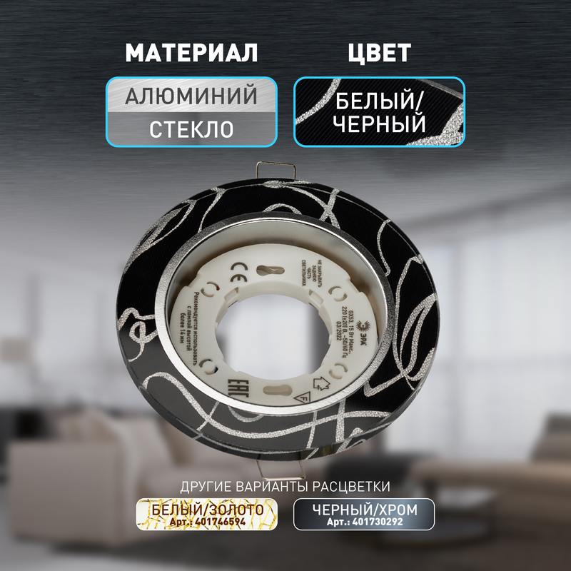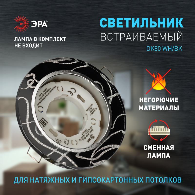 Характеристики DK80 WH/BK Светильник ЭРА под лампу Gx53, 220V,13W, белый/черный: