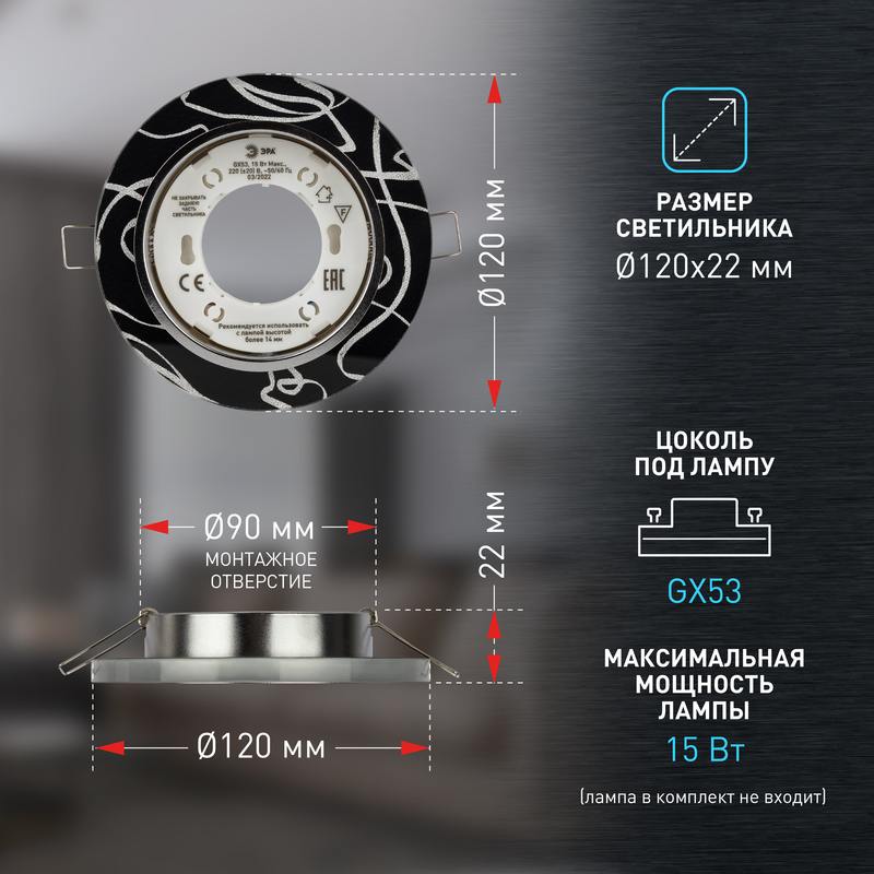 Светильник под лампу DK80 WH/BK станет превосходным решением для любого помещения: его можно разместить в спальне, в детской или на кухне. Светильник можно использовать как в качестве базового освещения, так и для создания акцентов в определенных зонах комнаты. Благодаря скрытой части корпуса светильники можно встраивать в потолок или стены, создавая разный дизайн помещений. Встраиваемый светильник ЭРА с приятным дизайном подойдет для комнат с разным интерьером: от лофта до модерна, классицизма или минимализма. При помощи точечных светильников можно освещать только те участки помещения, которыми вы пользуетесь в данный момент, не затрачивая лишнюю элеткроэнергию. Максимальная мощность лампы составляет 15 Вт. Корпус встраиваемого светильника изготовлен из металла, что делает его особенно удобным и надежным в использовании. Диаметр отверстия, требуемого для установки светильника составляет 90 миллиметров, а диаметр самого светильника – 120 миллиметров. Купив встраиваемый светильник бренда ЭРА, вы останетесь довольны и сможете создать уют в Вашем доме! Внимание: лампа не входит в комплектацию.