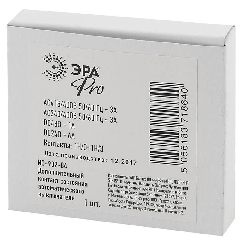 Характеристики Дополнительный контакт состояния автоматического выключателя ЭРА PRO NO-902-84 1НО+1НС: