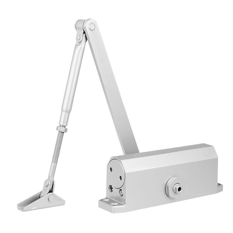 Характеристики — Дверной доводчик 46-0503 в литом алюминиевом корпусе — механическое устройство, необходимое для автоматического закрывания открытых дверей. — Предназначен для установки на двери весом 45-65 кг. — Стабильно работает при больших перепадах температуры и влажности, без дополнительной регулировки, такие показатели достигаются благодаря использованию незамерзающего масла и герметичного корпуса. — Хорошим подтверждением качества доводчика является его рабочая температура от -40 до+55°C. — Обладает регулируемой скоростью закрытия по двум параметрам, что значительно облегчает использование устройства и тишину его работы.