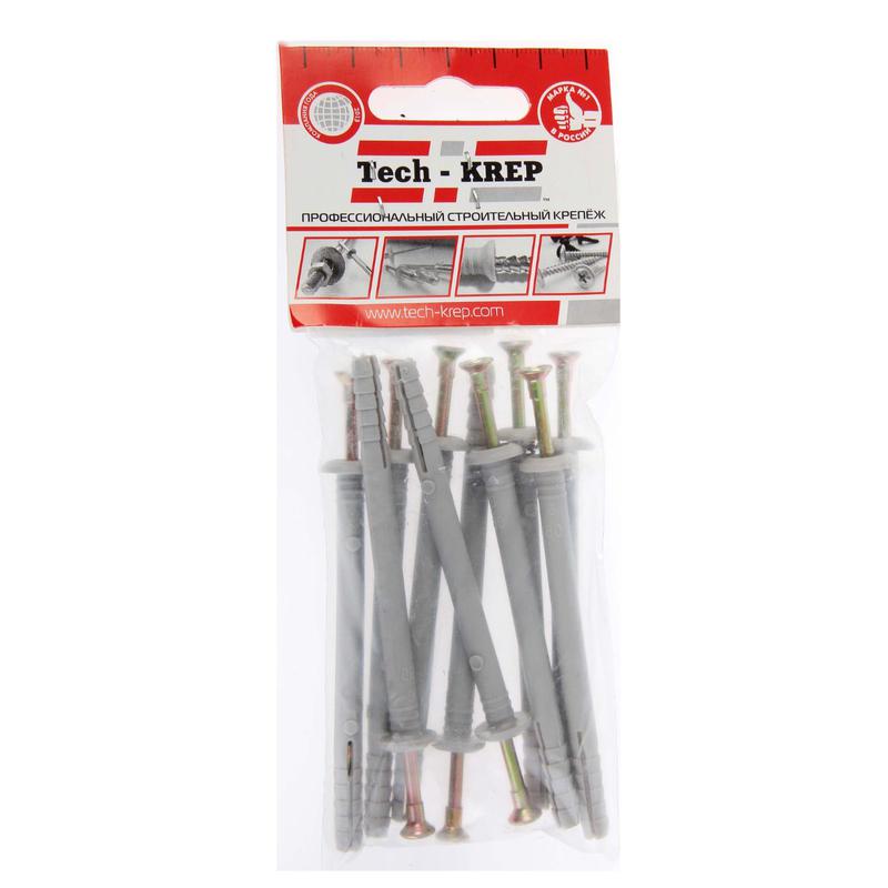 Характеристики Дюбель-гвоздь 6х80 с грибовидной манжетой полипропилен (уп.10шт) пакет Tech-Krep 103902: