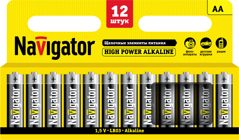 Характеристики Элемент питания алкалиновый AA/LR6 94 782 NBT-NE-LR6-BP12 (блист.12шт) Navigator 94782: