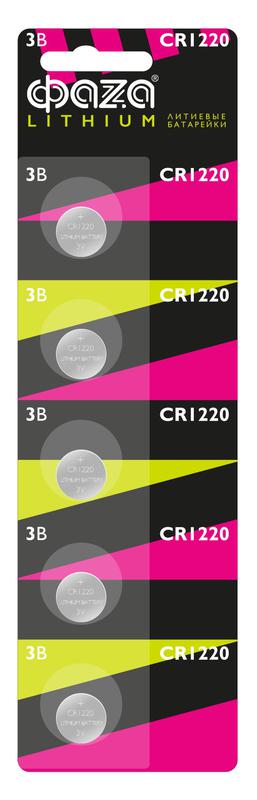 Характеристики Элемент питания литиевый CR1220 3В BL-5 (блист.5шт) ФАZА 5027886: