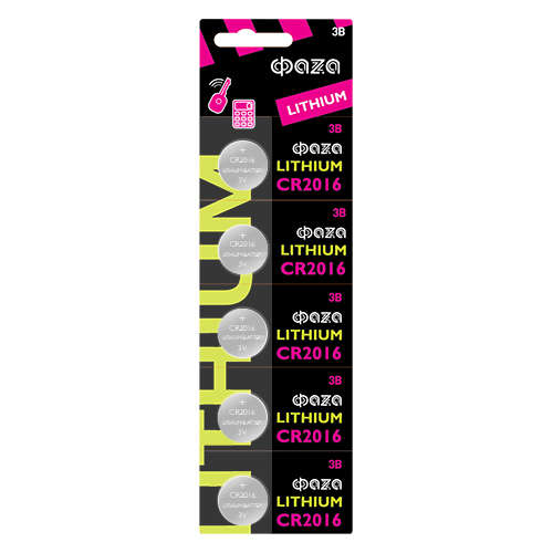 Характеристики Элемент питания литиевый CR2016 3В BL-5 (уп.5шт) ФАZА 5003156: