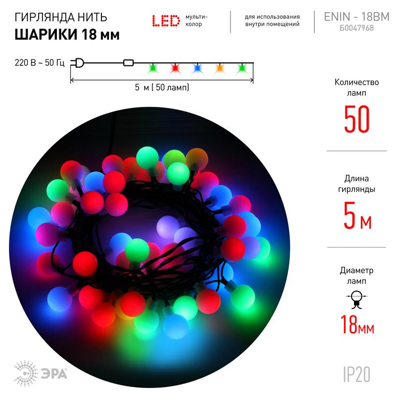 Характеристики ENIN — 18BM ЭРА Гирлянда LED Нить Шарики d18мм, 5 м мультиколор, 220V: