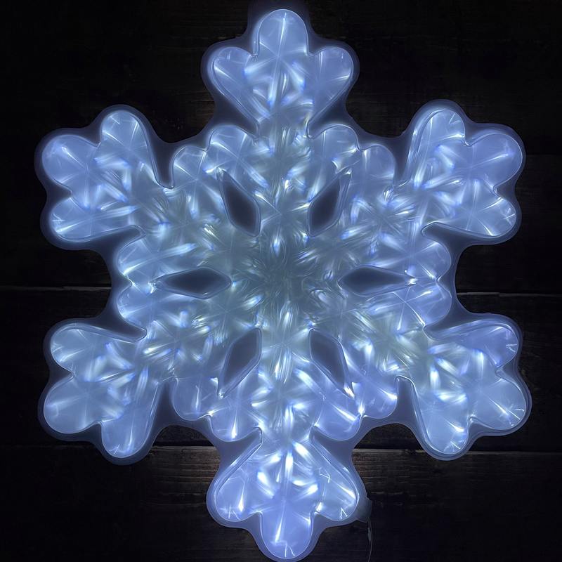 Новогодняя настенная светодиодная фигура ЭРА "Снежинка" (арт. Б0041936) для праздничного декора внутри и снаружи помещений. Защищена от влаги и пыли (IP44), отличается морозостойкостью. Работает от стандартной электросети 220 В, прозрачный провод практически не заметен. Изготовлена из ударопрочного пластика. LED-фигура представляет собой узорчатую снежинку. Светится холодным белым светом. Дизайн фигуры идеально подходит к зимним праздникам. Размеры фигуры: 50 х 3,5 х 48 см. Свет создают 48 ярких и экономичных светодиодов, которые не перегреваются даже при длительной работе без перерывов. Новогодняя LED-фигура — простой и быстрый способ создать праздничное настроение, украсить дом, офис, общественное пространство.