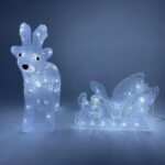 Новогодняя светодиодная фигура ЭРА "Олень с санями" (арт. Б0047973) для создания праздничной атмосферы и декорирования интерьера. Изготовлена из акрила — крепче и устойчивее многих других. Будет надёжно стоять без дополнительных креплений. Отличается морозостойкостью. LED-фигура представляет собой новогоднего оленя с санями, светится холодным белым светом. Дизайн фигуры идеально подходит к зимним праздникам. Прозрачный провод практически незаметен в интерьере. Фигура работает от стандартной электросети 220 В. Размеры: олень — 40 х 16 х 50 см, сани — 42 х 22 х 27 см. Свет создают 120 ярких экономичных светодиода последнего поколения. Они не тускнеют со временем и не перегреваются. Новогодняя LED-фигура — простой и быстрый способ создать праздничное настроение, украсить дом, офис, общественное пространство.
