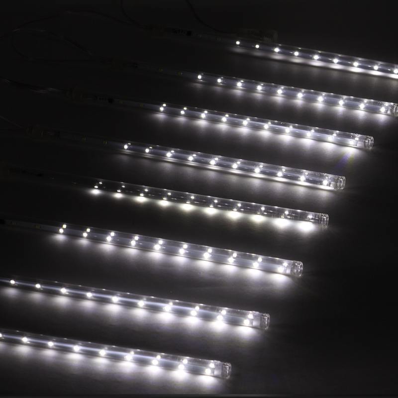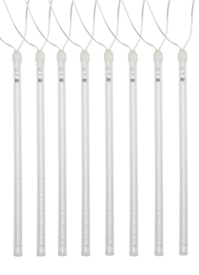 Новогодняя светодиодная гирлянда "Сосульки" (арт. Б0041910) с динамичным свечением: свет в каждой из 8 сосулек "течет" вниз в разное время — так создаётся эффект естественной капели, который поддерживается и цветовой температурой (холодный белый свет). Длина сосульки — 30 см, в каждой — по 18 ярких экономичных LED-диодов. Эта лаконичная стильная гирлянда отлично подходит для украшения пространства в зимнем сезоне, великолепно смотрится на окнах, фасадах зданий. Защищена от влаги и пыли (IP44), морозостойка — можно использовать на улице в регионах с низкими температурами. В комплект входит трансформатор — гирлянда полностью готова к подключению и отвечает требованиям пожарной безопасности. Ещё одно преимущество — специальный разъём для сопряжения с другими гирляндами. Такая модульная конструкция позволяет соединять в единую цепь до 4 гирлянд ЭРА "Сосульки", создавая длинный световой ряд для максимально эффектной иллюминации. Современная светодиодная технология экономит до 90% электроэнергии.