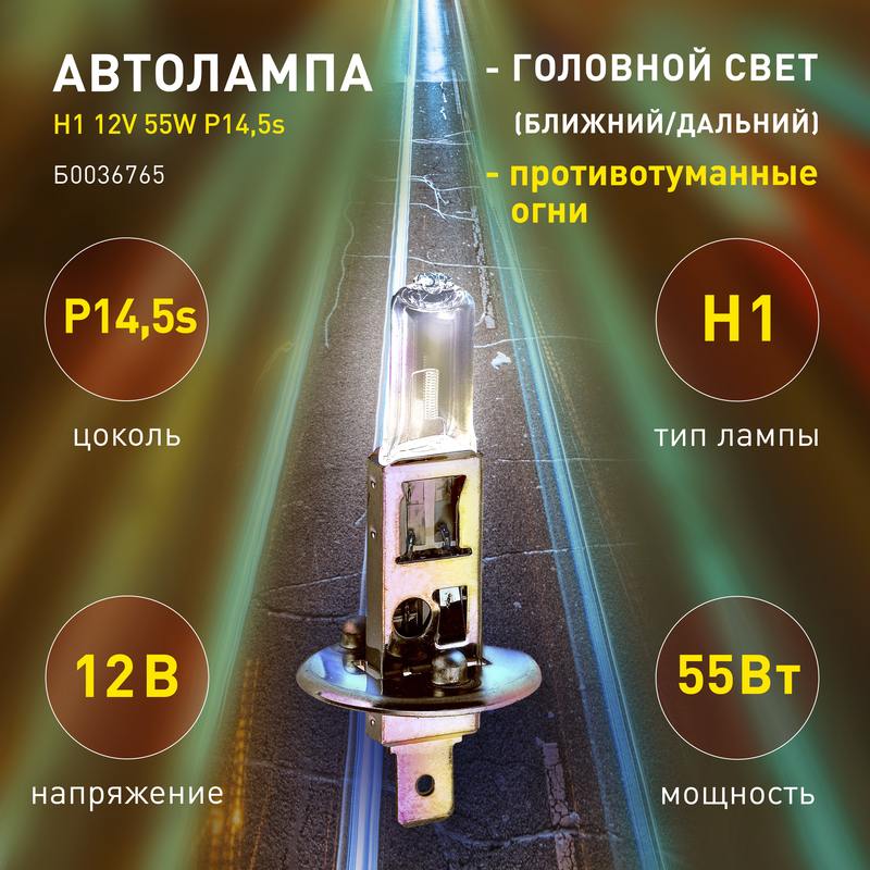 Характеристики ЭРА Автолампа Н1 12V 55W P14,5s (лампа головного света, противотуманные огни):