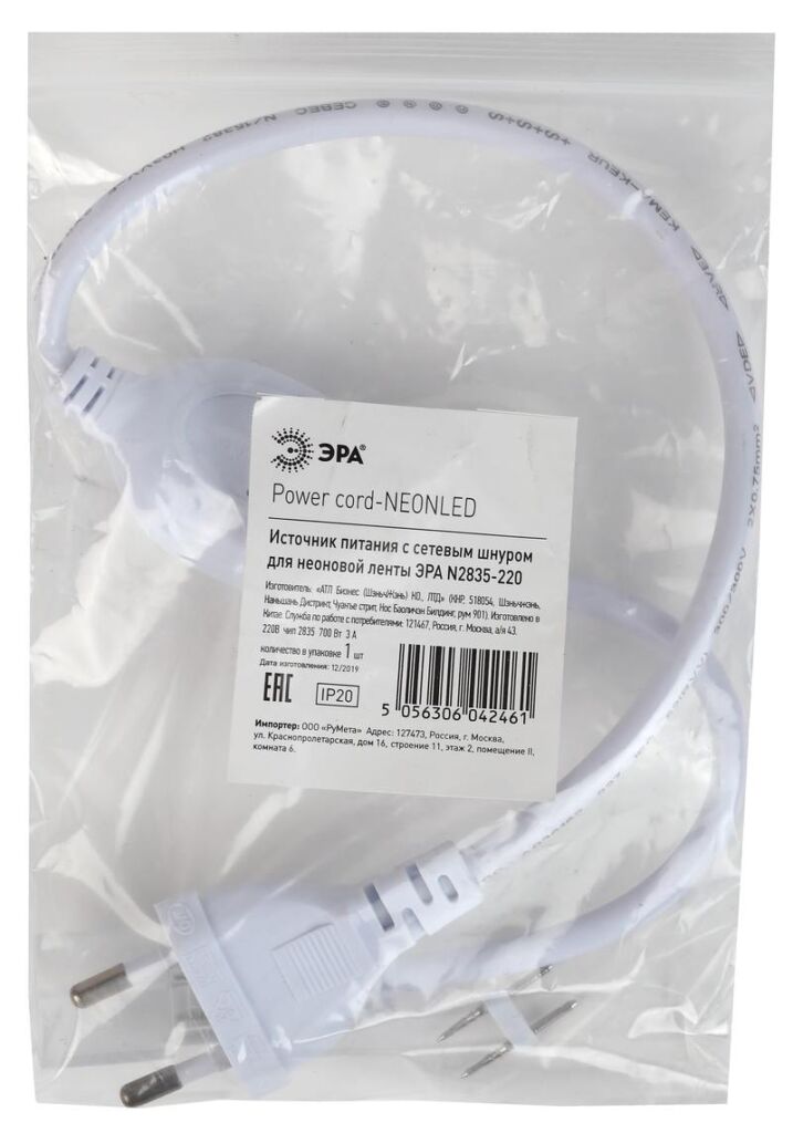 Характеристики ЭРА Источник питания power cord-NEONLED: