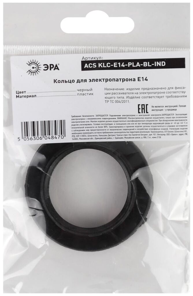 Характеристики ЭРА Кольцо для патрона E14, пластик, черное: