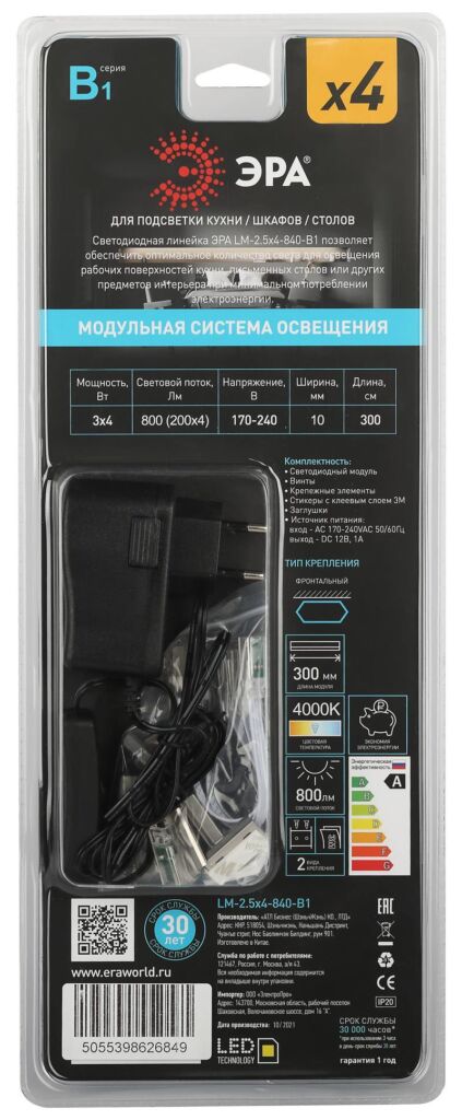 Характеристики ЭРА Модульный светильник LM-4×2,5-840-B1: