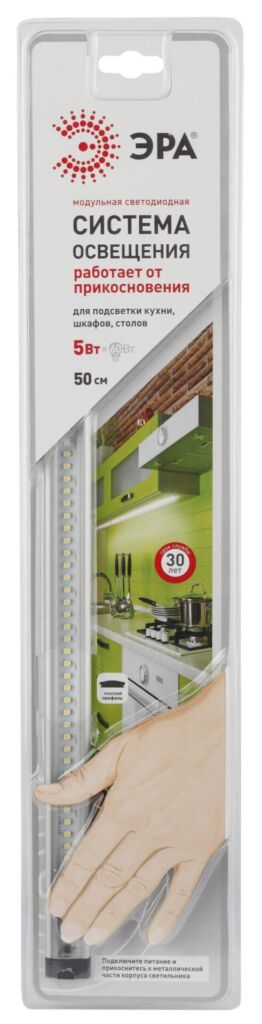 Светодиодный модуль с управлением от датчика прикосновения. Мощность 5Вт. Срок службы 30000 часов. Напряжение питания 12В DC. Цветовая температура 4000K. Комплектация: светильник, источник питания, крепежные клипсы, двусторонний скотч