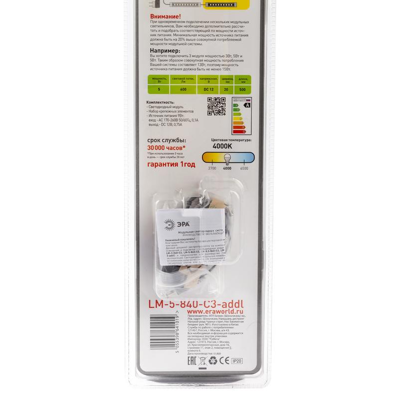 Характеристики ЭРА Модульный светильник LM-5-840-C3-addl: