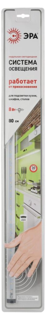 Светодиодный модуль с управлением от датчика прикосновения. Мощность 8Вт. Срок службы 30000 часов. Напряжение питания 12В DC. Цветовая температура 4000K. Комплектация: светильник, источник питания, крепежные клипсы, двусторонний скотч