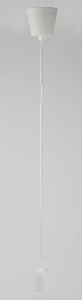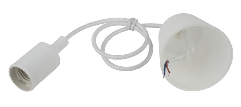 патрон с подвесом, длина провода 80 см, изготавливается из термостойкого пластика, материал химически устойчивый к агрессивным средам, обладает высокой прочностью и теплостойкостью; не обладает способностью выдерживать высокие температуры нагрева, поэтому его чаще всего используют для ламп накаливания мощностью не более 60 Вт