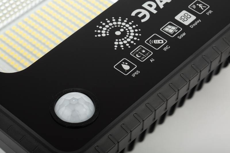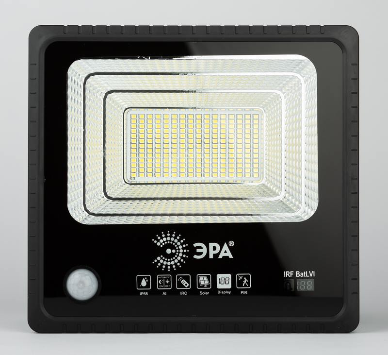 Прожектор ЭРА ERAPRO-100 функционирует на солнечной батарее и имеет высокую степень защиты от влаги и пыли (IP65). Работает как при низких, так и при высоких температурах (от — 20 до + 50 градусов). Уличный прожектор оснащен морозоустойчивым сменным аккумулятором Li-FePO4. Питание происходит от солнечной панели, время заряда — 8 часов. В прожекторе установлены яркие экономичные LED элементы последнего поколения: 208 светодиодов. Главное преимущество – встроенный датчик движения. Время до перехода в дежурный режим — 30 секунд. Датчик движения можно отключать, если для вас он неактуален. И снова включать, если опция понадобилась. В комплект также входит пульт дистанционного управления, который позволяет на расстоянии включать и выключать свет, отключать датчик движения, устанавливать таймер работы, регулировать яркость. Выбирайте прожектор ЭРА ERAPRO-100 и освещайте участок!