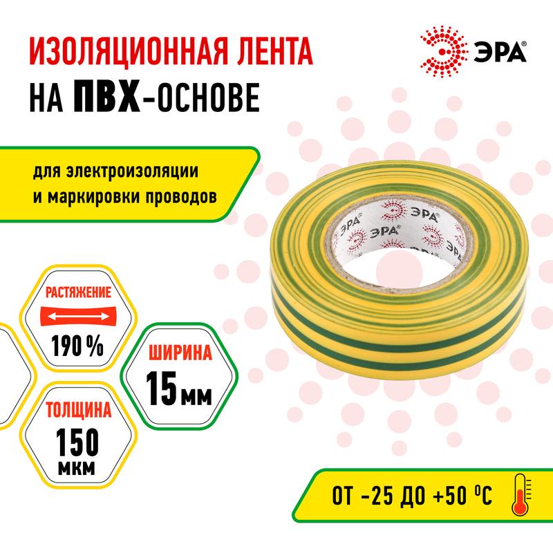 Характеристики ЭРА ПВХ-изолента 15мм*20м желто-зеленая: