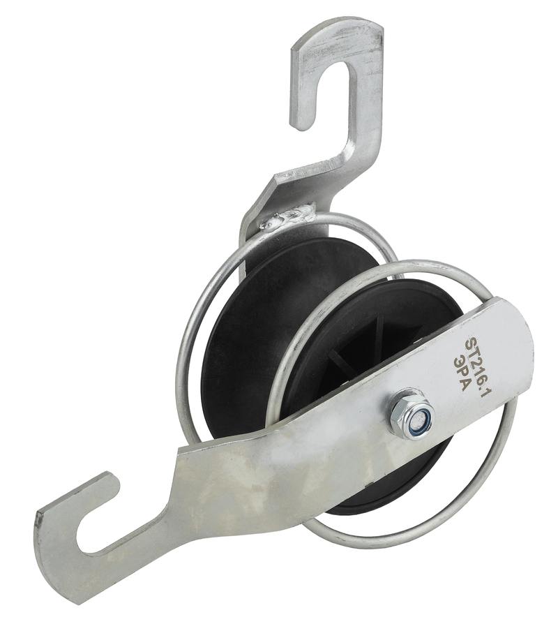 Предназначен для монтажа изолированных проводников (СИП) на прямых участках линии. Ролик одинарный ST26.1 имеет один пластиковый диск из нейлона, рама — из оцинкованной стали.
