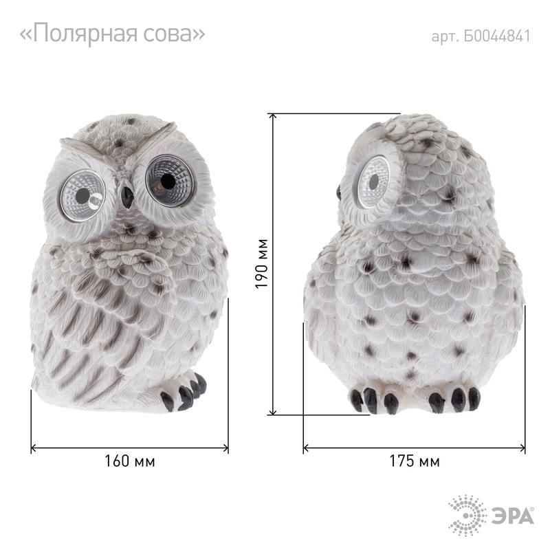Характеристики ЭРА Садовый светильник Полярная сова на солнечной батарее, полистоун, 19 см: