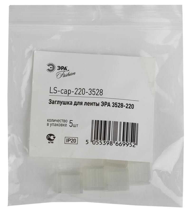 Характеристики ЭРА Заглушка для ленты LS-cap-220-3528: