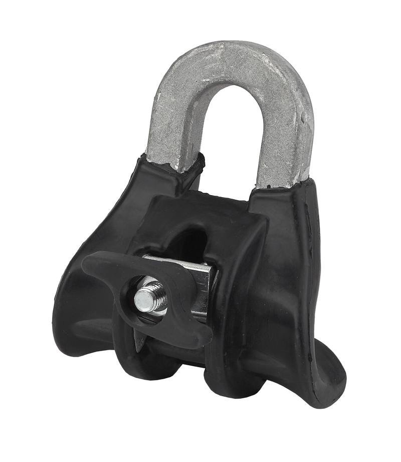 Исползуется для поддерживающего крепления изолированной несущей нейтрали на промежуточных опорах. Изолированный несущий провод укладывается в канавку зажима и фиксируется с помощью гайки-барашка.
