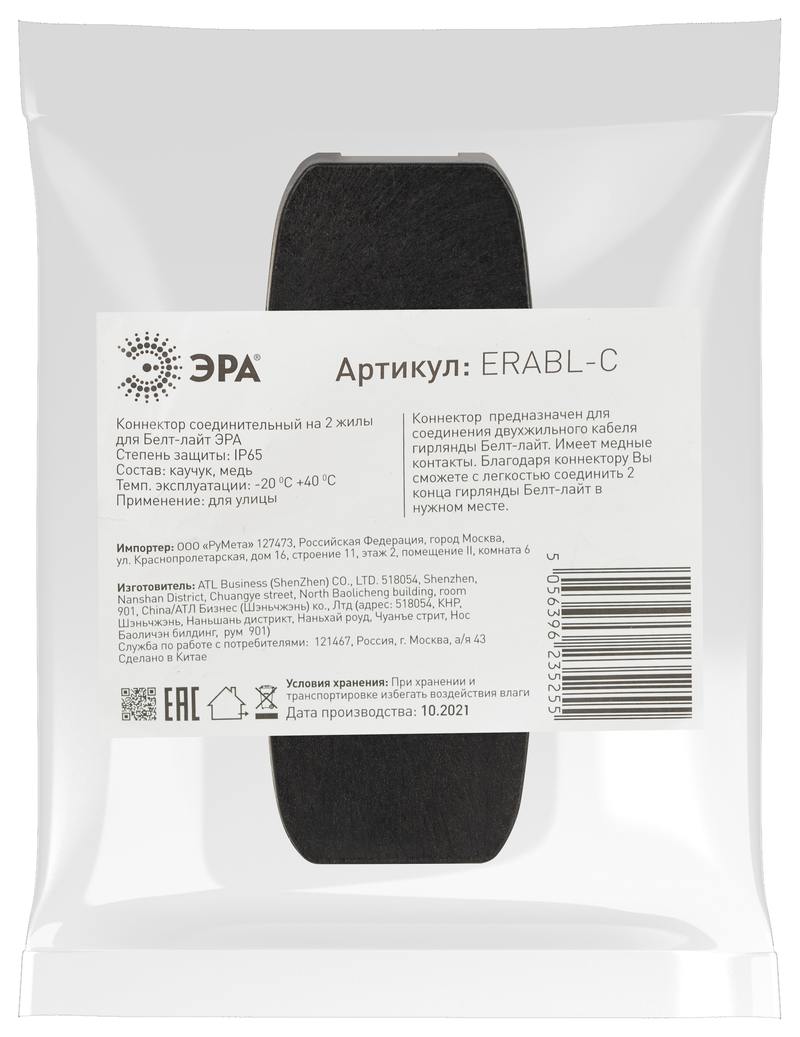 Характеристики ERABL-C ЭРА Коннектор соединительный для Белт-лайт (на 2 жил.), черный: