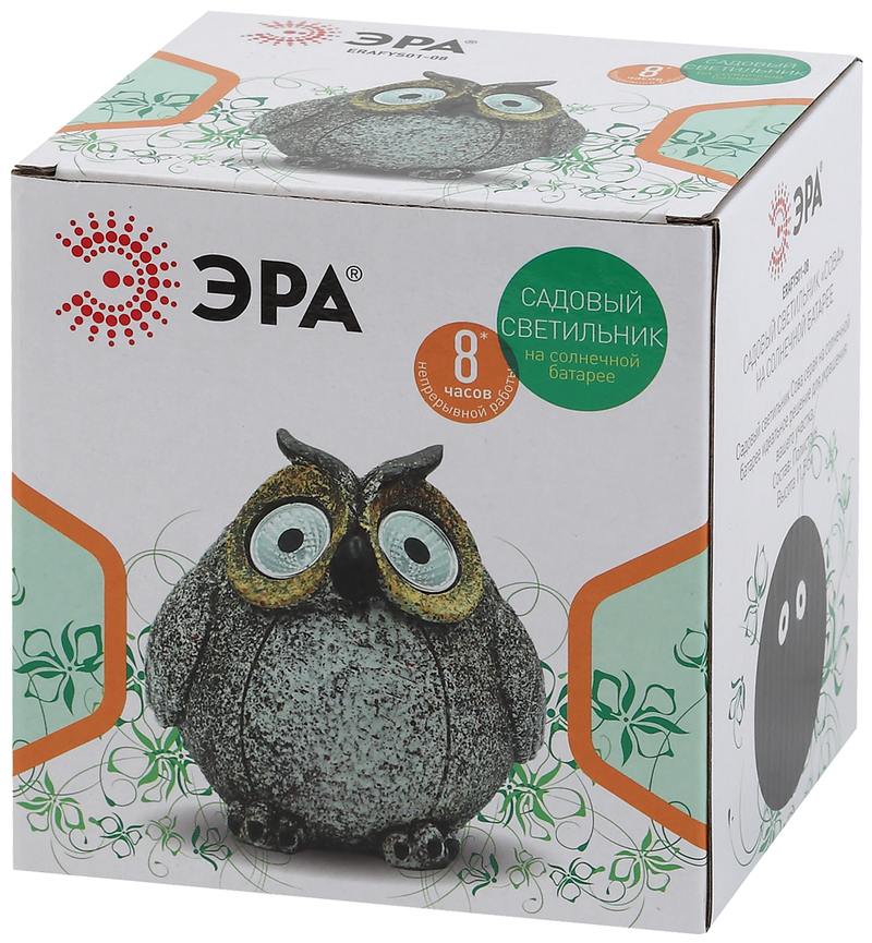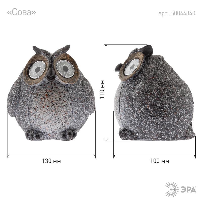 Характеристики ERAFYS01-08 ЭРА Садовый светильник Сова серая на солнечной батарее, полистоун, 11,5 см: