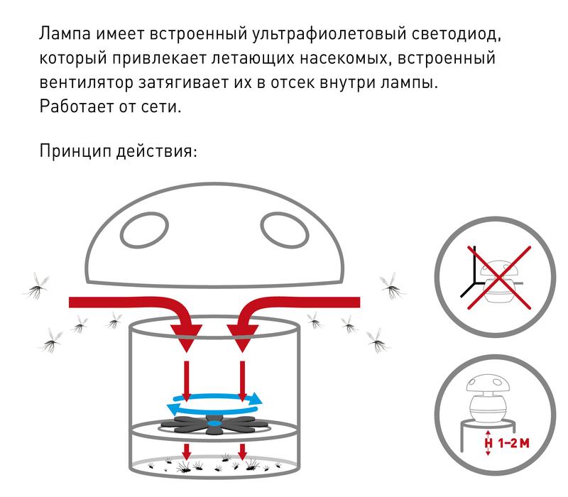 Противомоскитная ультрафиолетовая лампа ЭРА ERAMF-04 обеспечит спокойный и комфортный отдых в летний сезон. И никакие назойливые комары или мошки не нарушат Ваше умиротворение. Милый дизайн лампы от насекомых в виде розового грибочка особенно придется по душе детям. Принцип ее действия основан на ультрафиолетовом излучении, которое привлекает комаров. Специальный вентилятор затягивает насекомых внутрь, оставляя только тишину и приятные воспоминания об отдыхе. Лампа безопасна для детей, легка в эксплуатации и достаточно компактна, чтобы взять ее с собой. Лампа против комаров работает от сети и особенно удобна в использовании в дачным домиках. С ультрафиолетовой лампой ЭРА гарантирован спокойный отдых без назойливых насекомых.