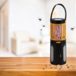 Противомоскитный светильник имеет два типа встроенных светодиодов: белые и ультрафиолетовые. Первые не оказывают никакого воздействия на насекомых и выполняют функцию уличной подсветки, вторые привлекают летающих насекомых, которые, подлетев к прибору соприкасаются со спиралью и получают удар током. Светильник имеет два варианта установки: его можно подвесить, либо раздвинув световые панели, установить на поверхности.