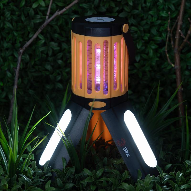 Противомоскитный светильник имеет два типа встроенных светодиодов: белые и ультрафиолетовые. Первые не оказывают никакого воздействия на насекомых и выполняют функцию уличной подсветки, вторые привлекают летающих насекомых, которые, подлетев к прибору соприкасаются со спиралью и получают удар током. Светильник имеет два варианта установки: его можно подвесить, либо раздвинув световые панели, установить на поверхности.